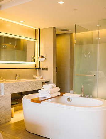 Dark tones, bold geometry — this bathroom redefines modern sanctuary